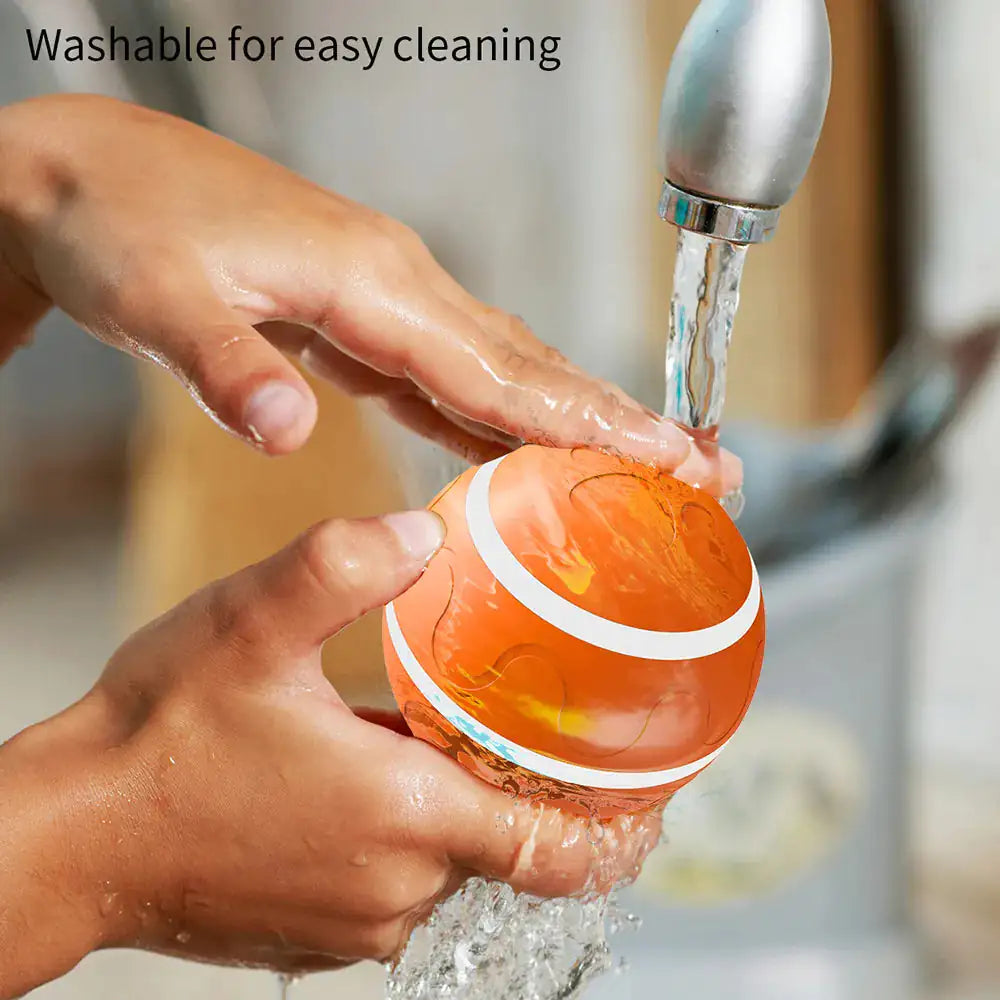 Crafted with utmost care, our pet ball toy boasts a double casing design for ultimate durability and safety. The hard-inner PC shell and soft food-grade BPA-free TPU exterior ensure your pet's well-being, while also being washable, odorless, and non-toxic.