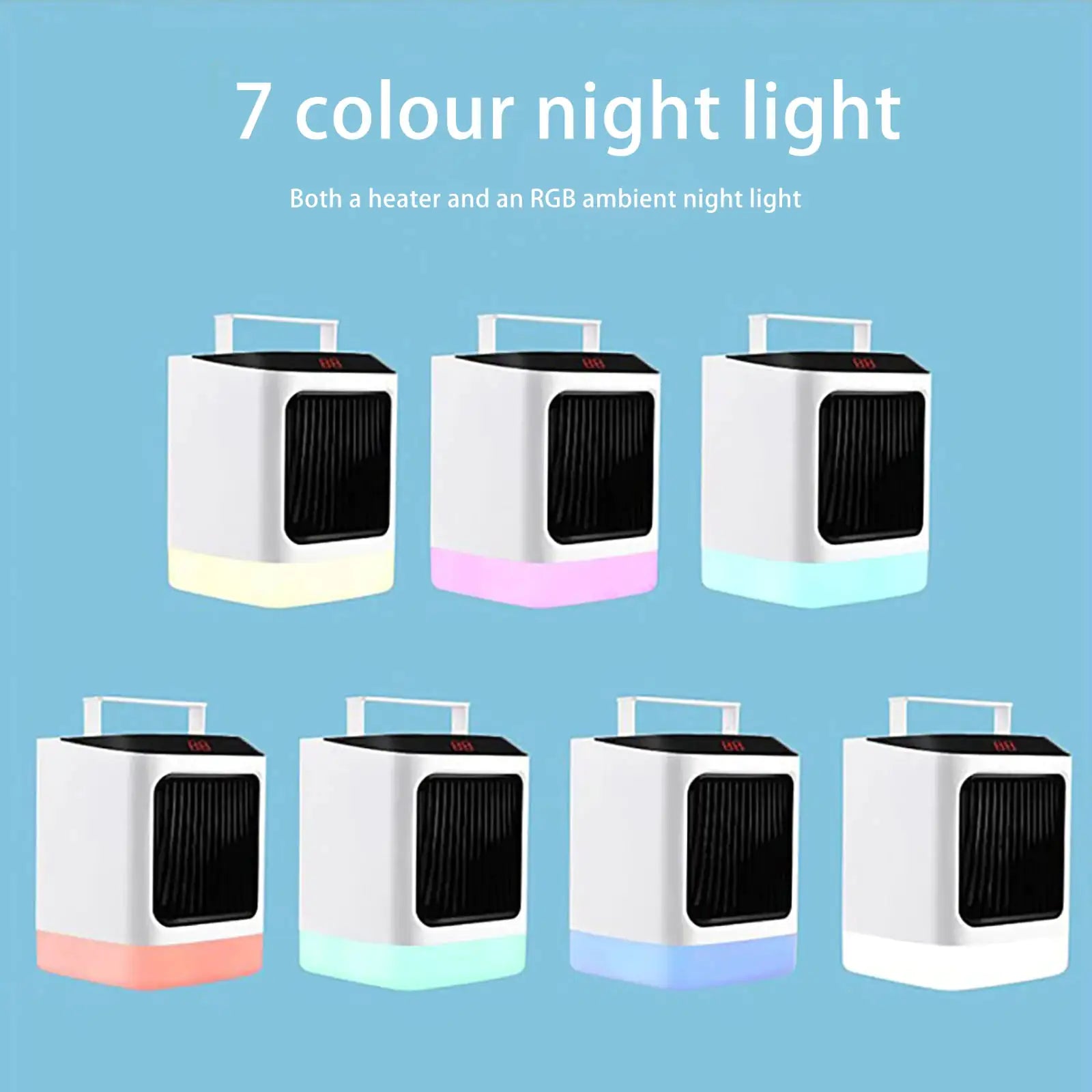 Featuring a sleek hidden handle design, this space heater is effortlessly portable, ensuring convenience and ease of use. Its integrated LED light offers seven vibrant colors to complement any decor, adding a touch of style to your space.
